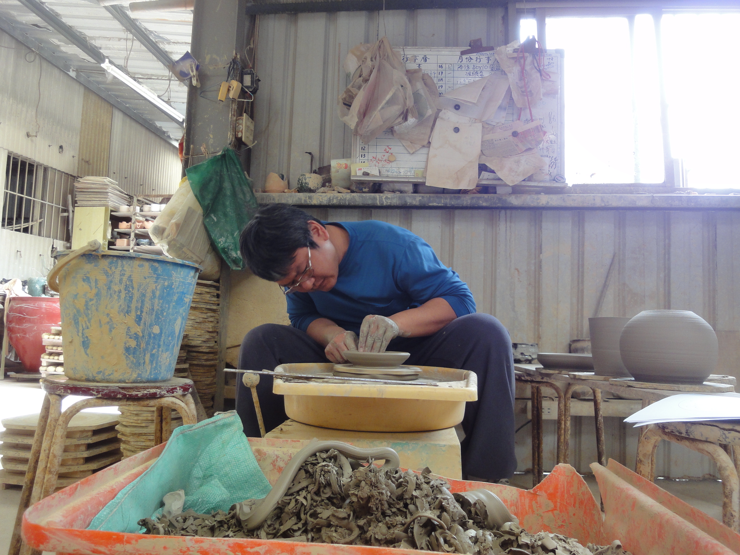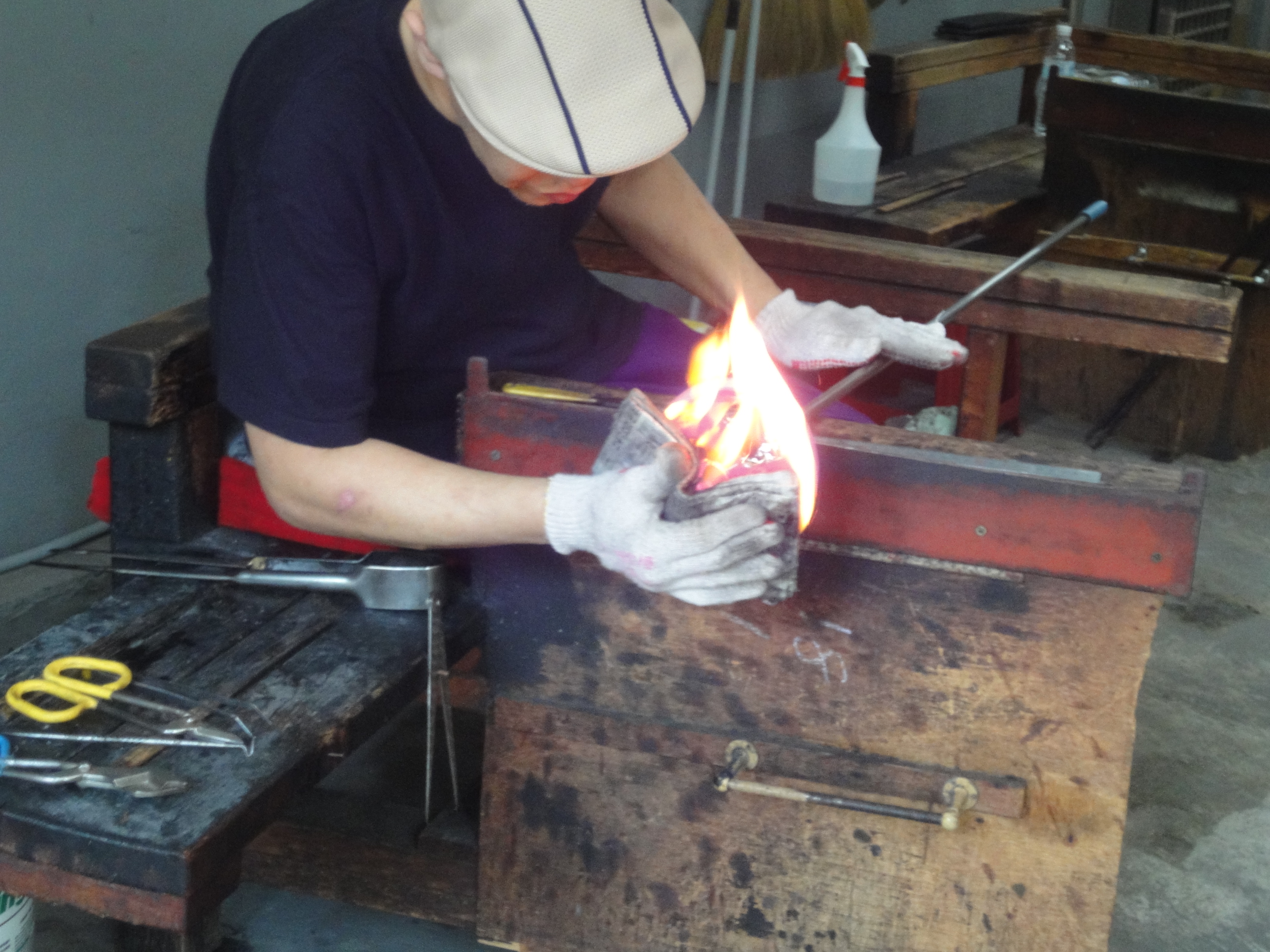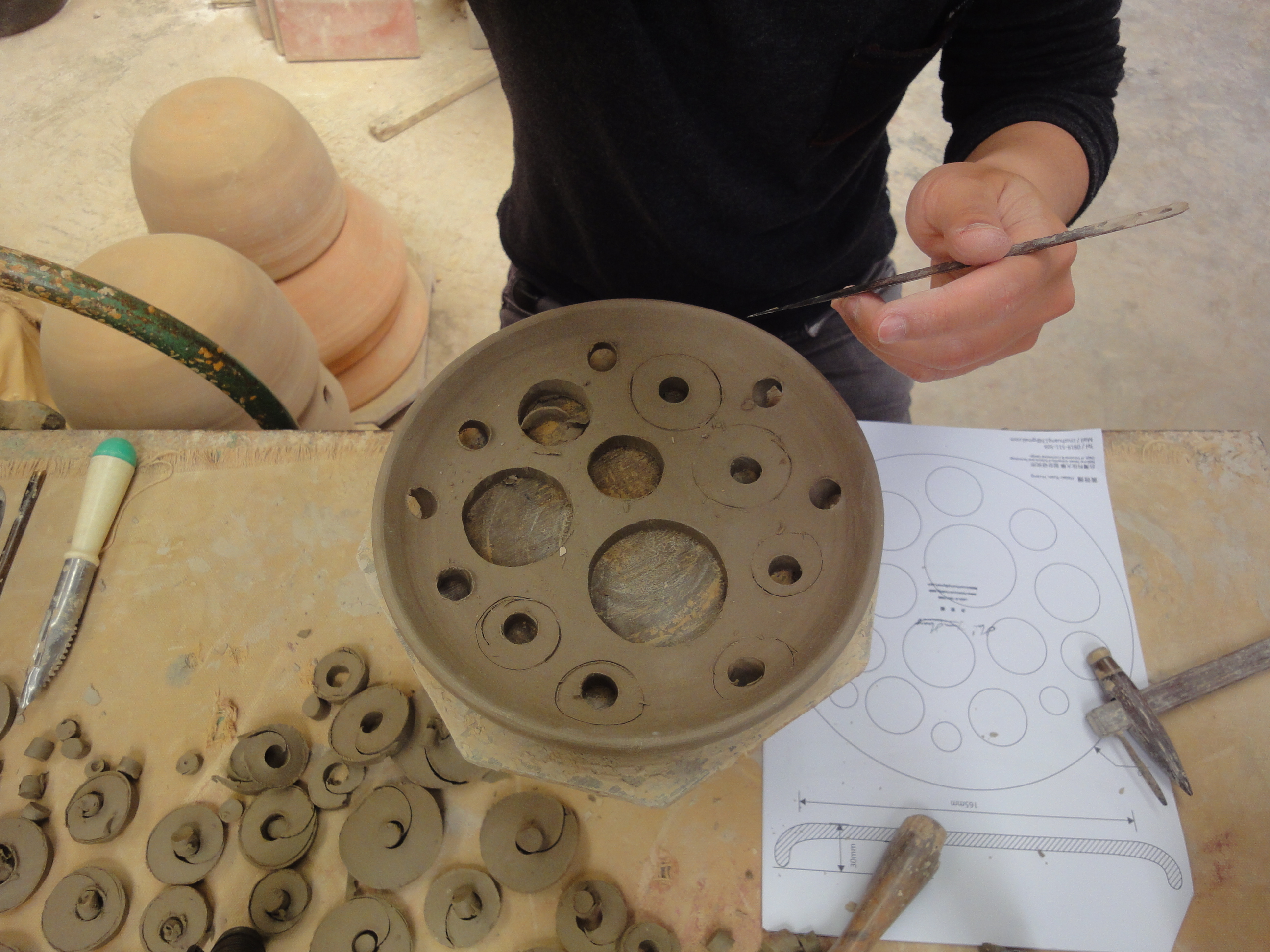 易碎的。陶瓷和玻璃正是屬於這樣性質的東西,都是必須使用高度的技術才能塑形,兩者的製造過程中很巧妙地恰好相反,玻璃高溫、軟化、塑形、冷卻定型;而陶 瓷塑形、高溫、然後定型,在這樣易碎的性質下卻都各自經歷了高溫的焠鍊磨成的材質,我們想讓兩者結合,但是陶瓷和玻璃的結合往往需要高度精密的方法或是使 用不易牢靠的黏著劑等等,我們套用了工業設計模具的概念,利用反脫模的方式,反向思考使陶瓷本身成為模具,吹製的玻璃如同射出成型的泡泡,搭配上陶瓷上的 洞因而形成了反拔薄的形態,這樣的有趣過程巧妙地把它們結合在一起。